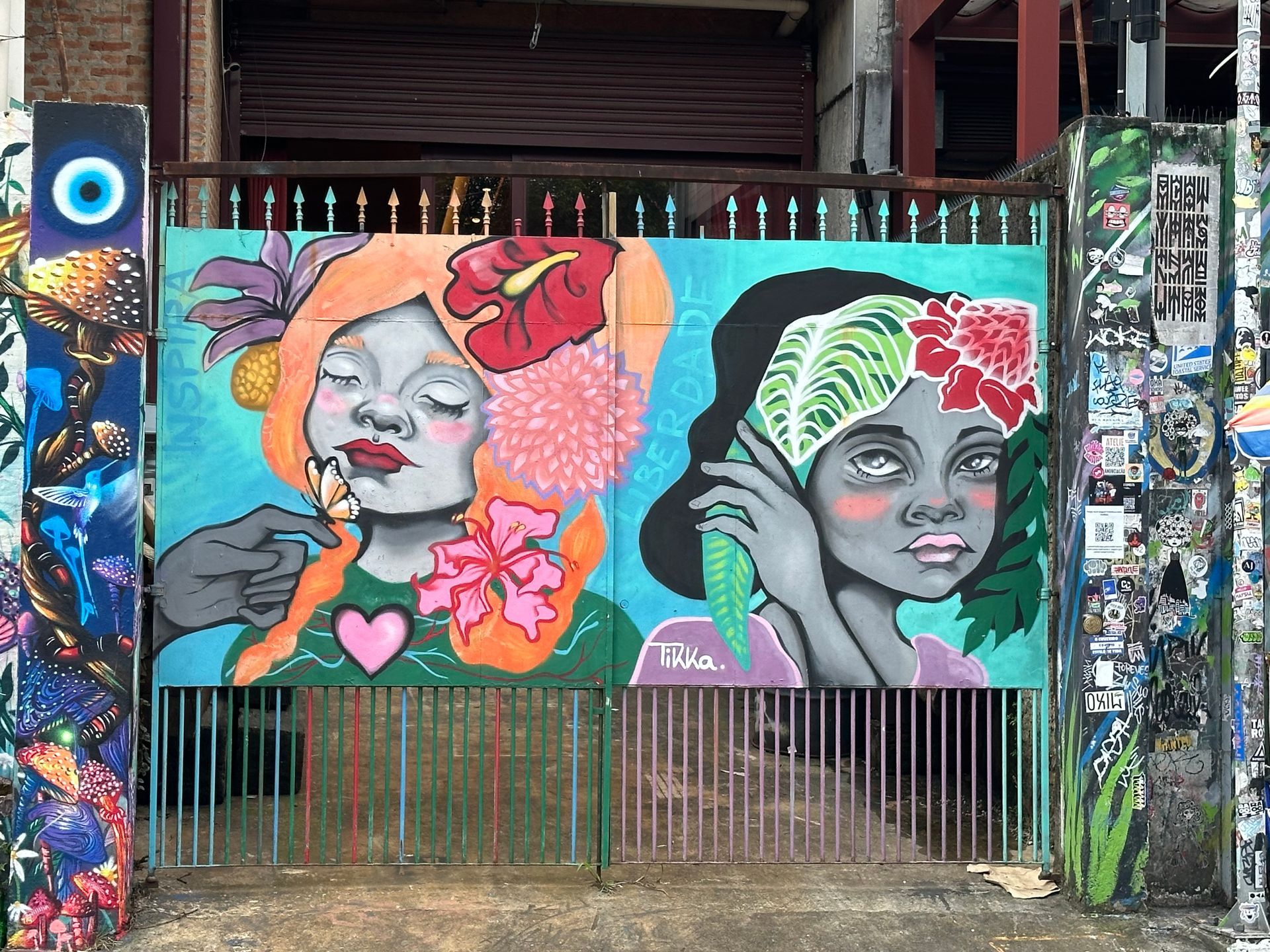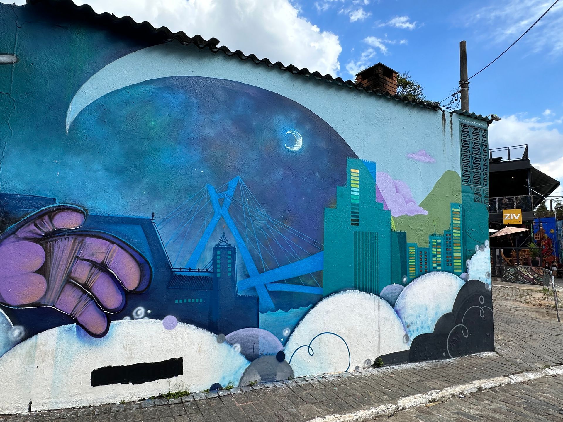 We then drove by Central Square & Performing Arts center ( which was covered by a lot of renovation scaffolding) on our way to the Beco do Batman neighborhood. Back in 1980 one artist did a mural of Batman and then more mural started to sprout here, now several blocks are dedicated to street art and their are lots of artisans and cool cafes mixed throughout.