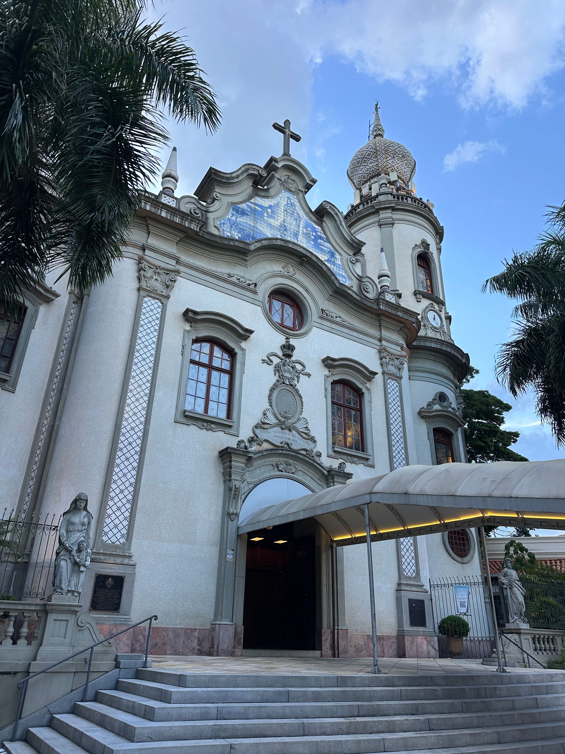 We grabbed a quick bite in this neighborhood and then went to find the most beautiful church I think I have ever seen Parroquia de Nuestra Señora de Brasil. It looks like a fancy hotel at the entry and the ceiling and mosaic tile work are stunning. An evening Mass was just getting ready to start - so we were limited in where we could stroll but the grounds and auxiliary spaces were equally charming. Was such a gorgeous little find.