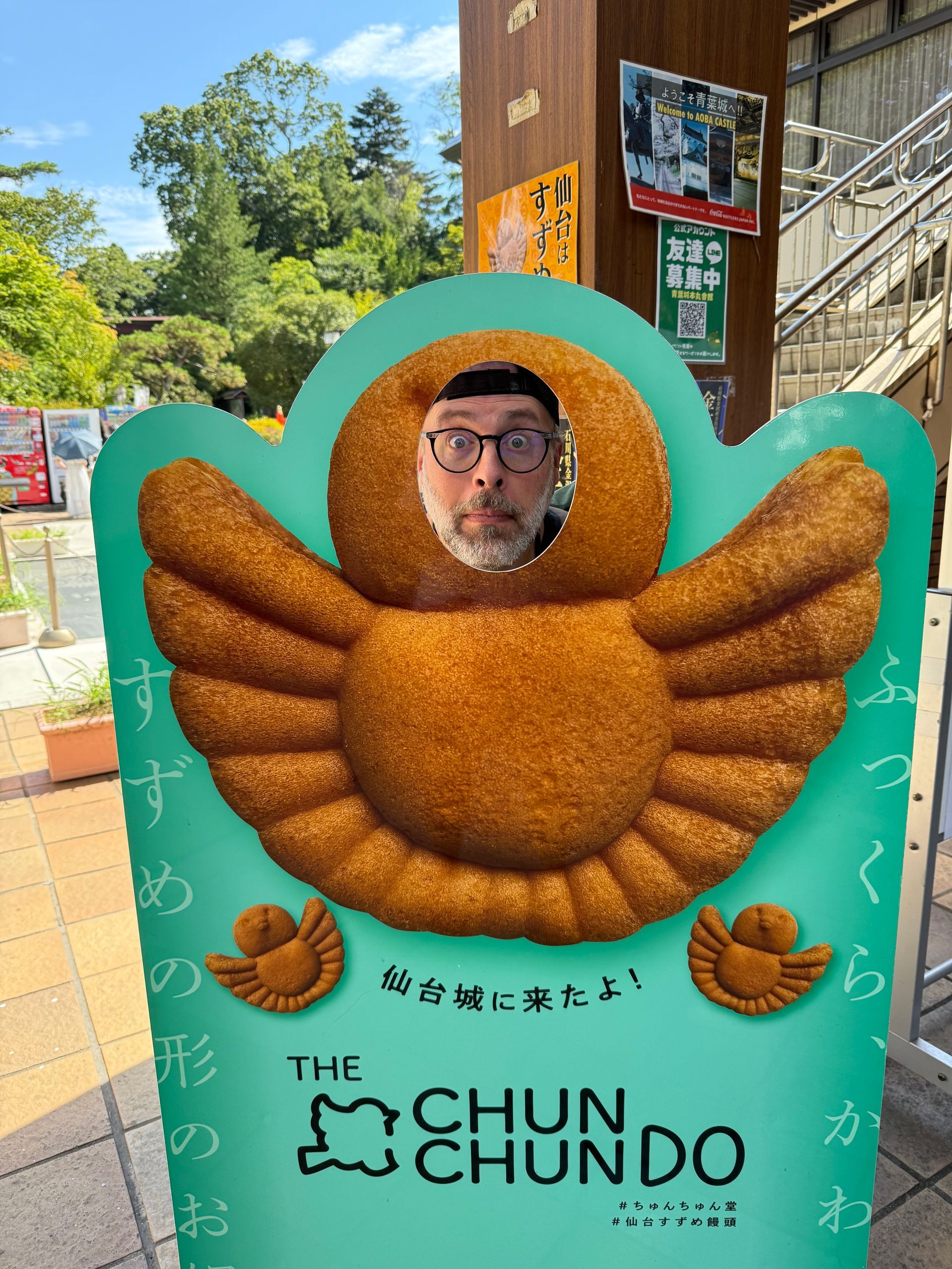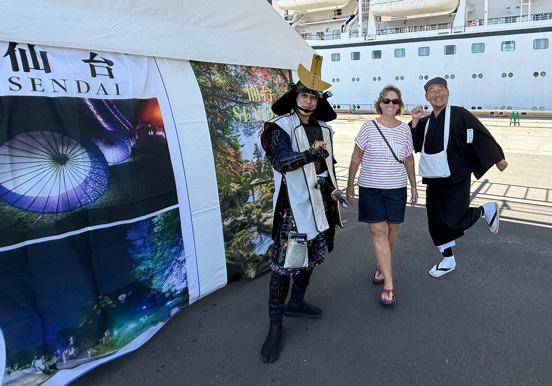We had a Samurai greeting as we docked at the port of Sendai, Japan. It's a shame we didn't have more time to explore the city. The city center was a 40 minute shuttle ride from the Port, into the Central train /bus station. Once there, we had to navigate over multiple levels of transportation hubs and stores and TONS OF PEOPLE, to figure out what we wanted to do. Bosco and I decided to take their version of a Hop On / Hop Off tram to get an overview of the city. Sadly the vehicle was an old fashion Trolley car, that got packed to capacity. It made it hard to see anything out the windows, let alone stand upright, while the tram went up and down the winding hills. Sadly we only had time to do one hop off the tram and finish the loop, because we had to be back at the station at 4 pm, to get shuttle bus back to the Port, for departure.The one stop we got to was the former site of the Sendai Castle.