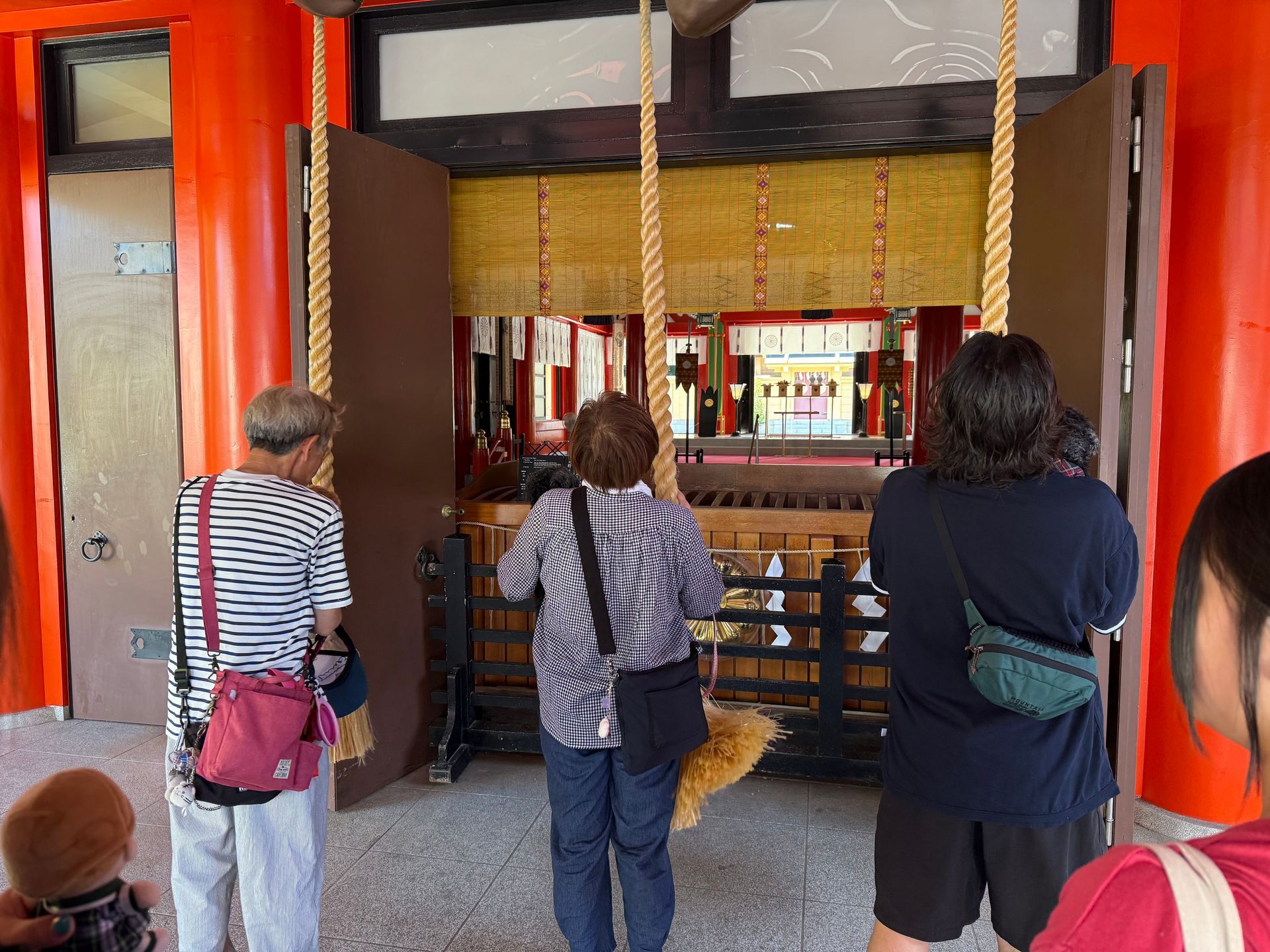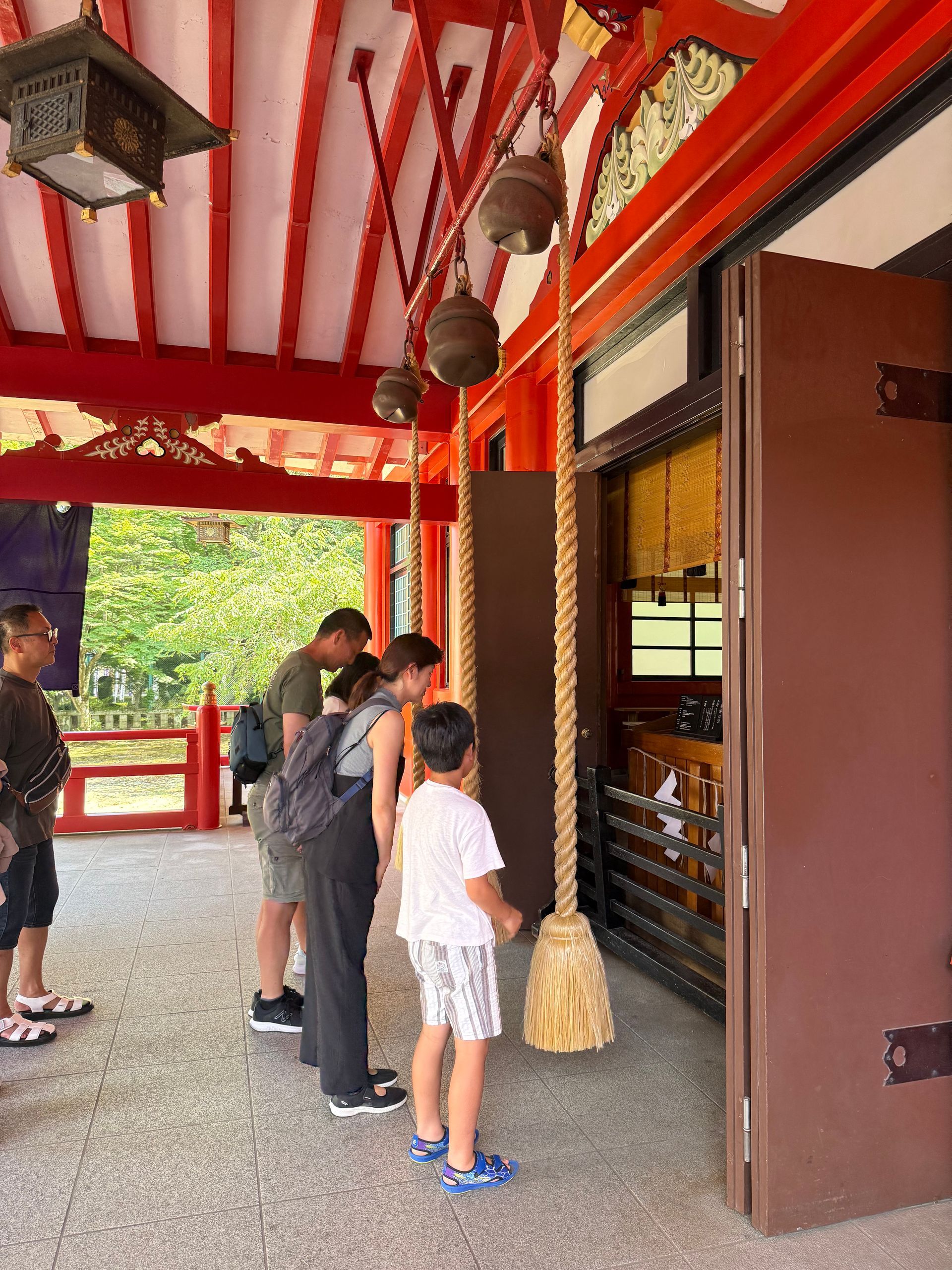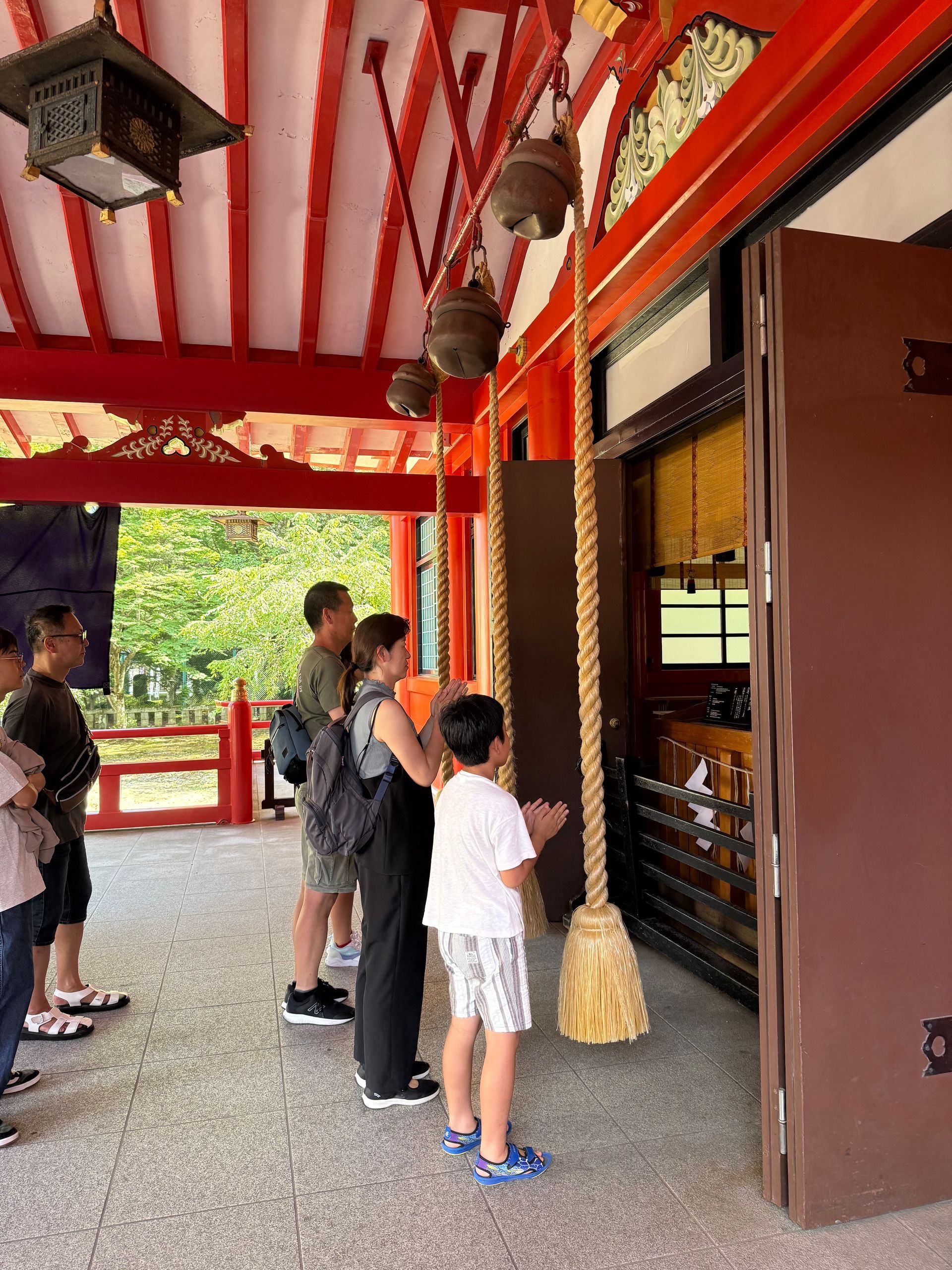 This was our first shrine experience! We got in line and just watched what they did in front of us. Approach, make a coin donation, step back, grab ropes and pull to ring bells, clap hands twice, bow & pause, then move on. We were a little confused on what the intentions at this shrine was suppose to be, because the 3 people in front of us were all holding dogs?!?