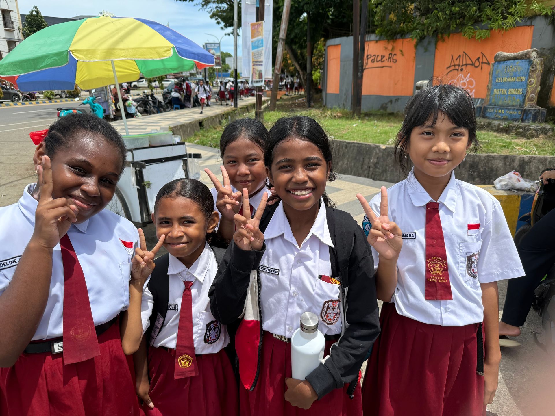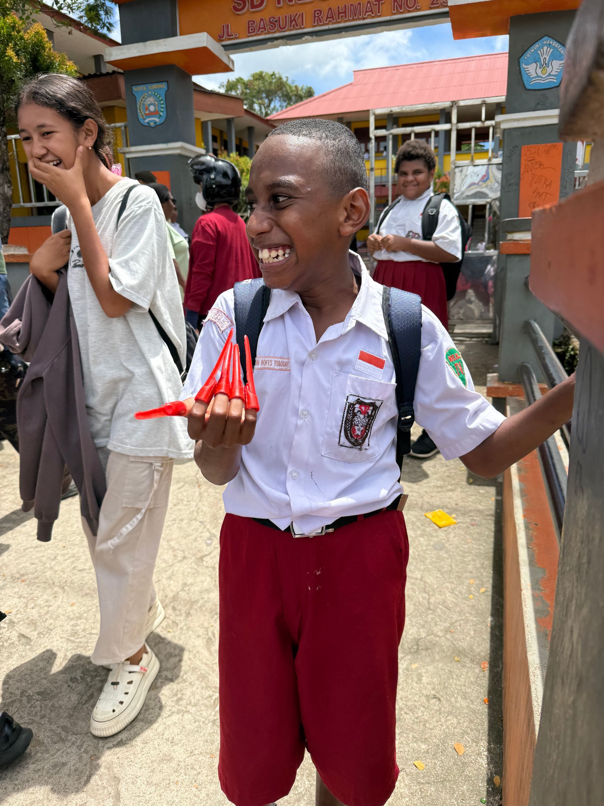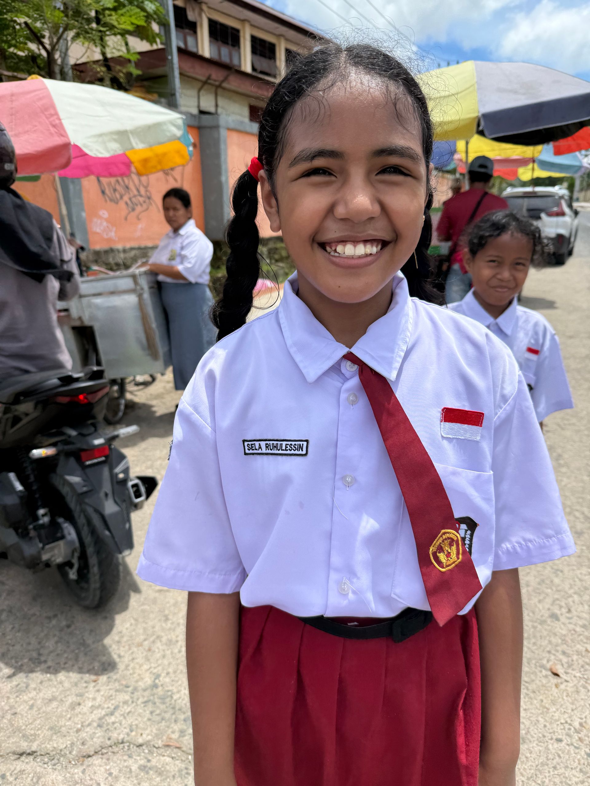 We arrived in Sorong around 6:30 pm, checked into Aston hotel, got some dinner on their rooftop and had an early night. We had some time to walk the neighborhood this morning before leaving for the Ferry. This is the land of motor scooters! The kids were out in abundance headed to school and all want to pose for photos with big smiles and hi's!!