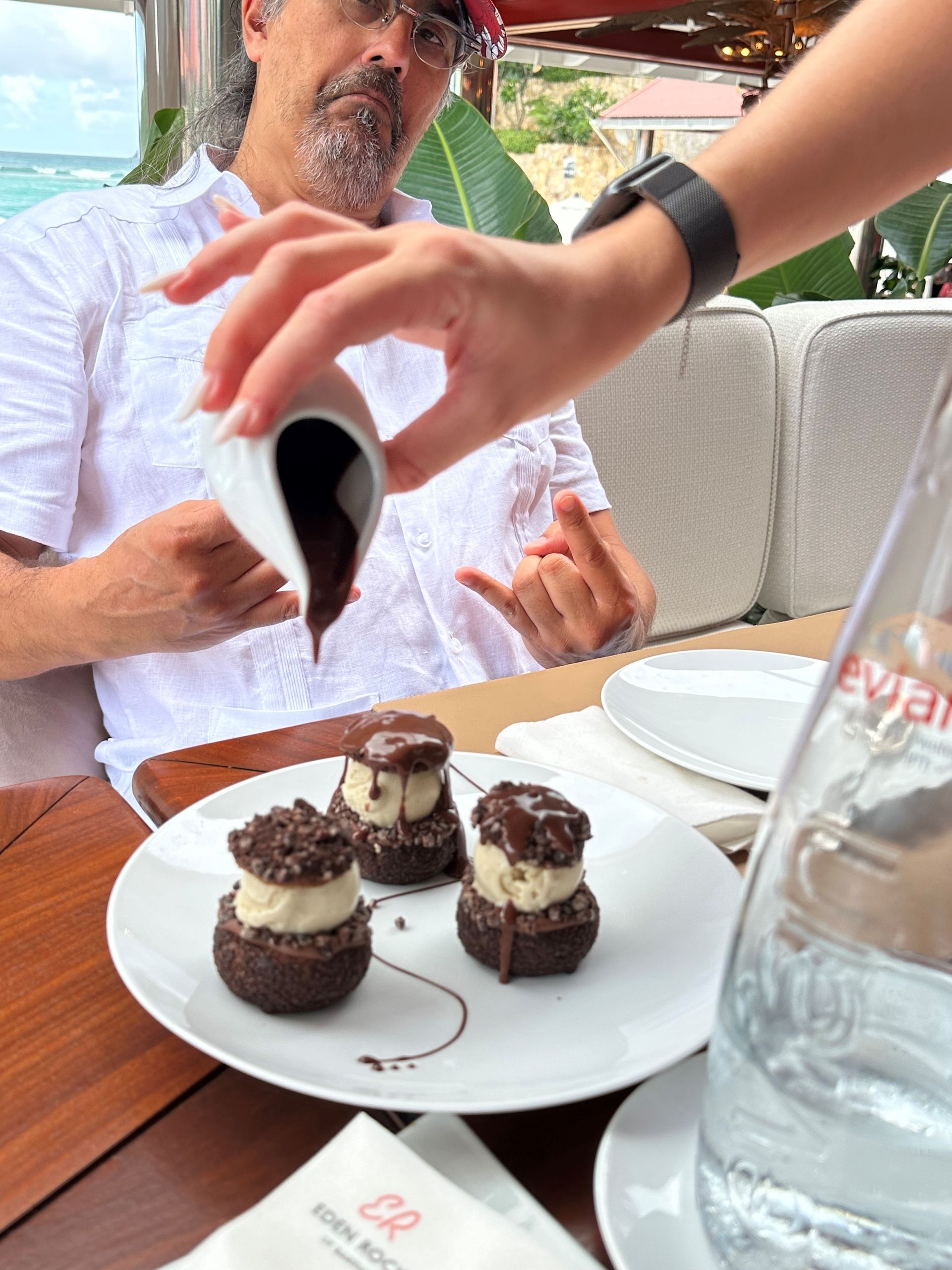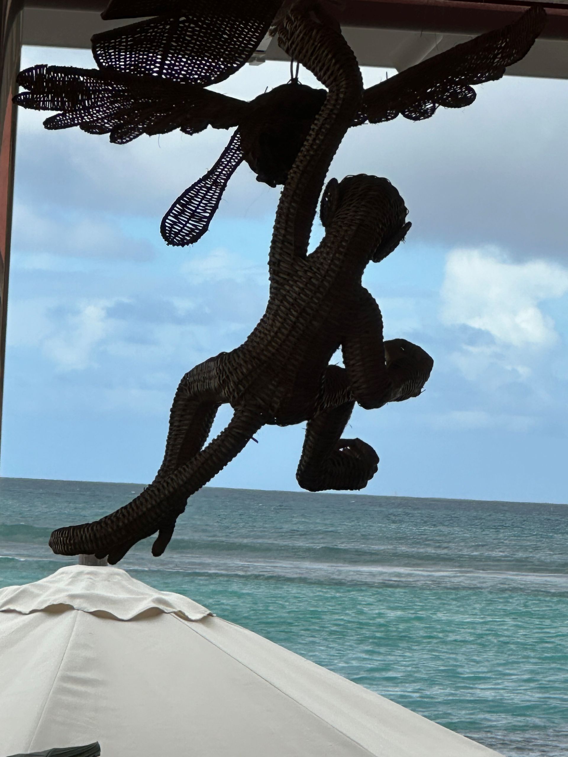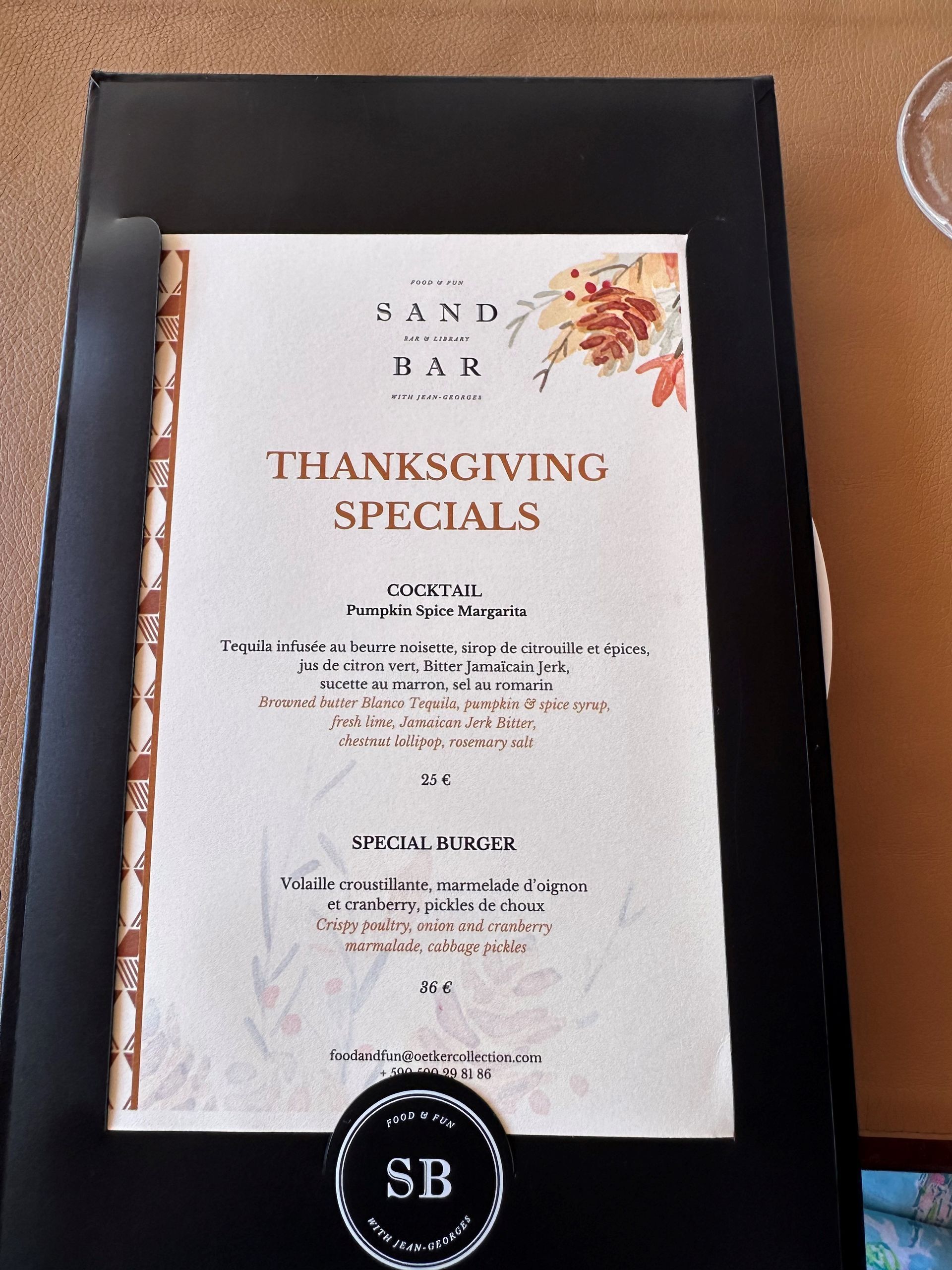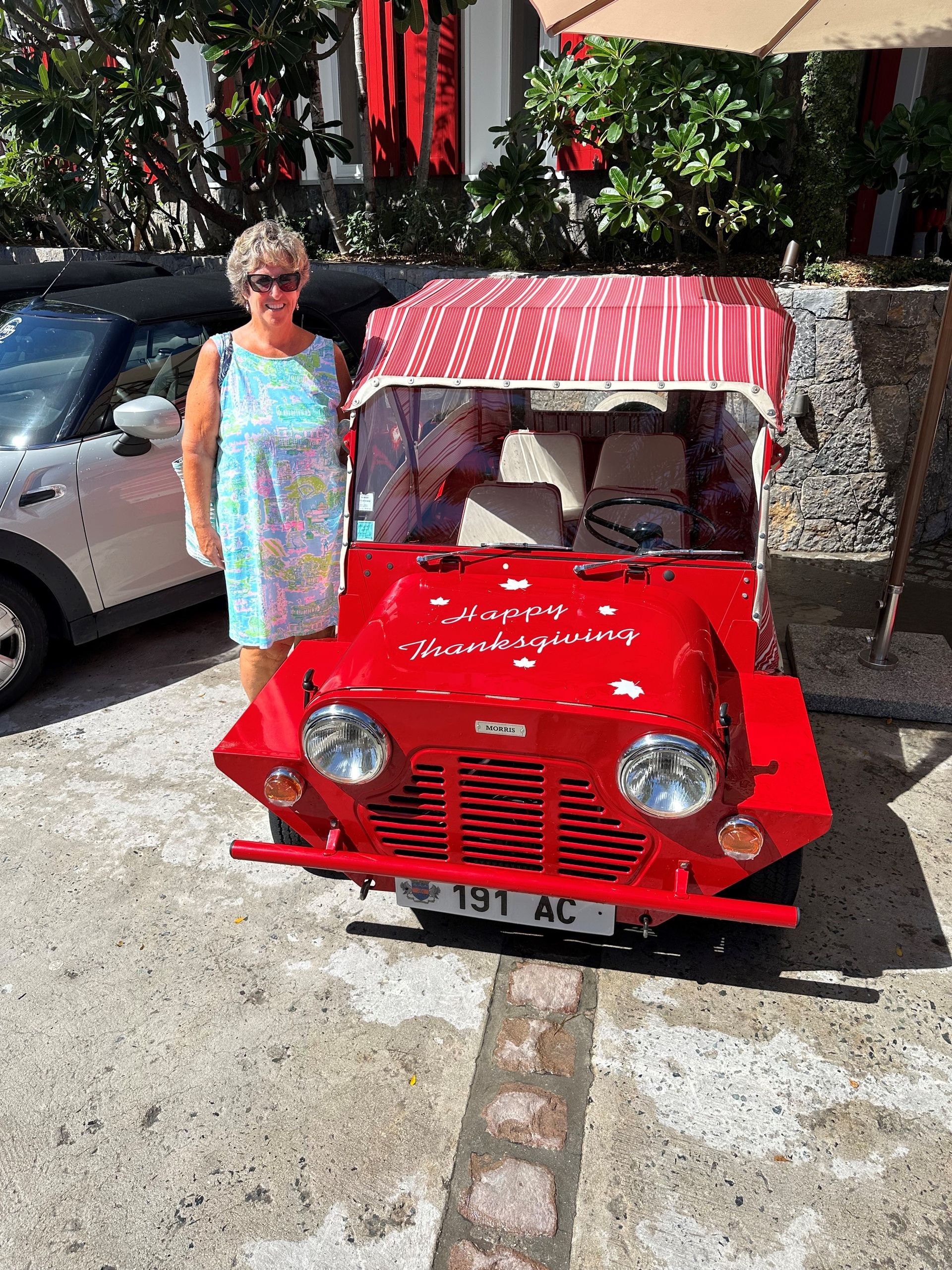 Once the rain let up we hailed a cab, a very chic & pricy mini van type ($44 to go less than 10 minutes) and headed up the hills from the port to the fancy Eden Rock Resort. We had a yummy Thanksgiving day lunch in the Remy Bar and Salon, comfy open air space and situated right on the beach. The Master Chef is the same as the Philadelphia Four Seasons, Jean Georges Vongerichten.