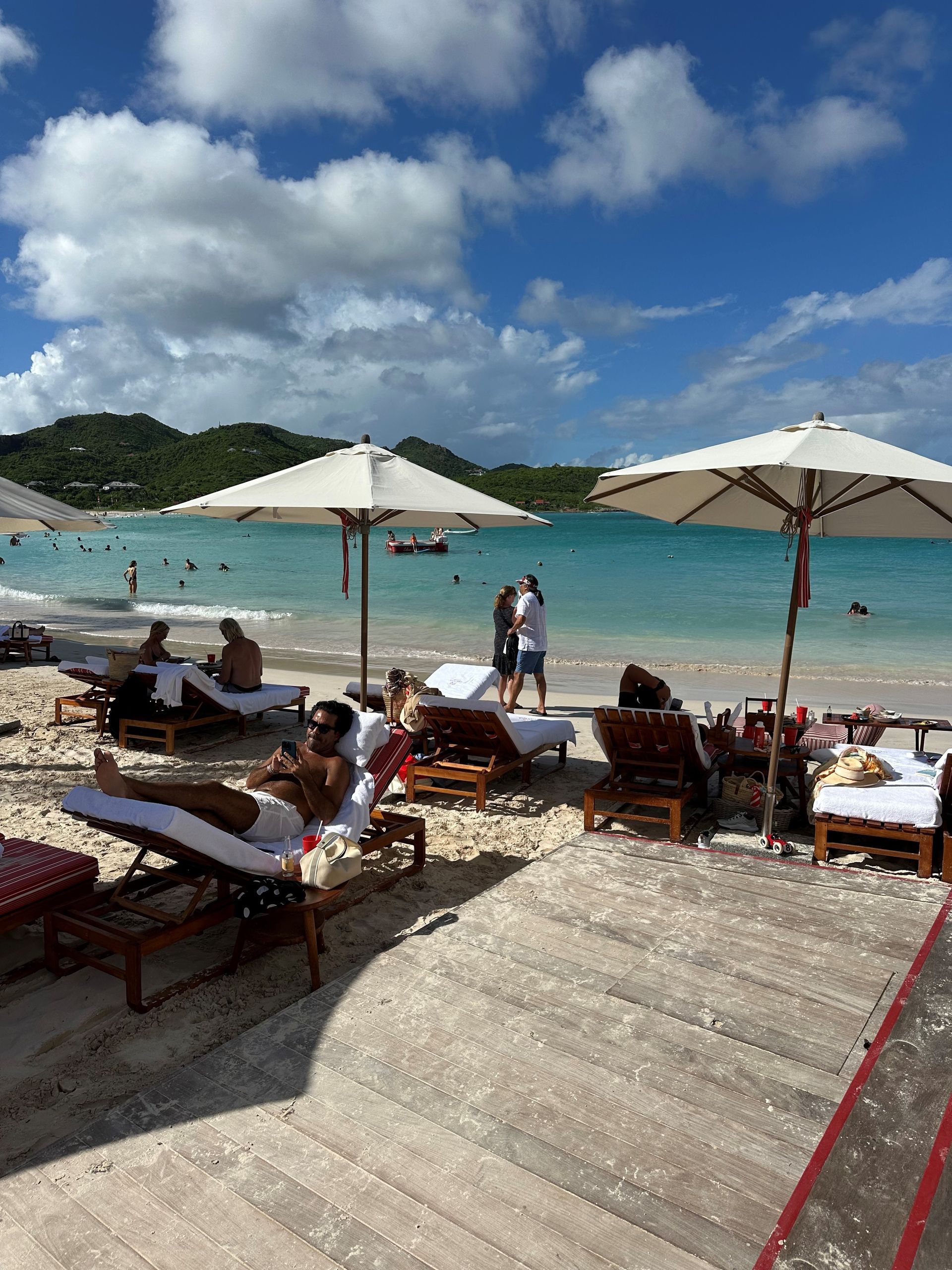 After lunch we strolled some more and took a dip in the ocean and checked out the crowd at the swanky Nikki Beach Club, next door to Eden Rock. Then another pricey cab back to the port, watched sunset and had some drinks at local bar before heading back on Ferry to St. Maartins.