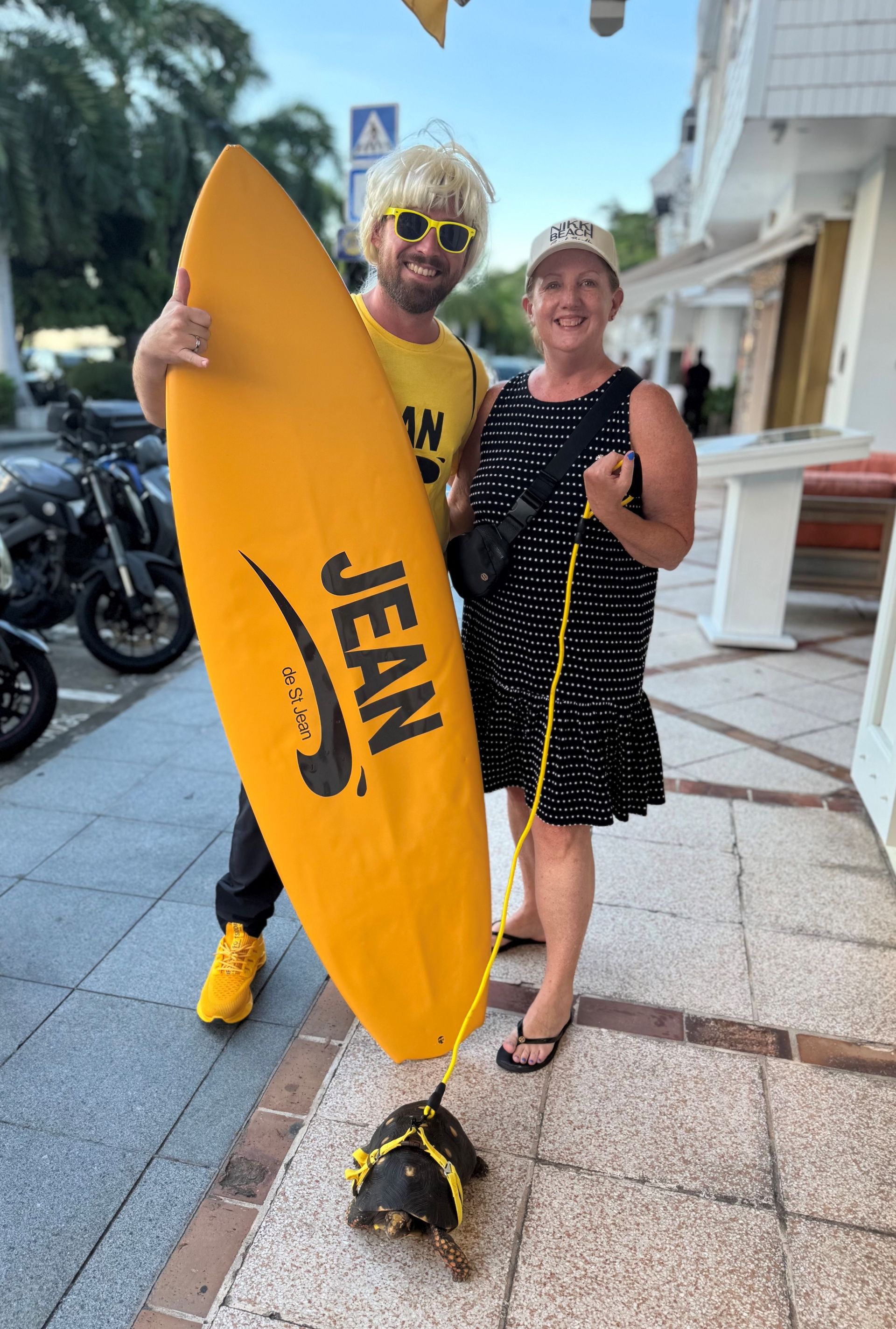 Cousin Cathy decided to give me a glimpse into the upper elite world, via a day trip to St. Barthelemy! We took a 45 minute ferry from Philipsburg, St. Maartins to Gustavia, St. Barthelemy and had to clear customs, both ways. Gustavia is like the Rodeo Drive of the Caribbean - lots of huge yachts and fancy shops line the marina. We had to stay extra-long is D&G because a passing rain shower hit as we were about to exit - very nice sales lady insisted we stay and check out 2nd floor! Was fun see all the iconic items I have vaguely heard about over the years. Rod bought Cathy a bracelet in Hermes for her 60th Birthday!