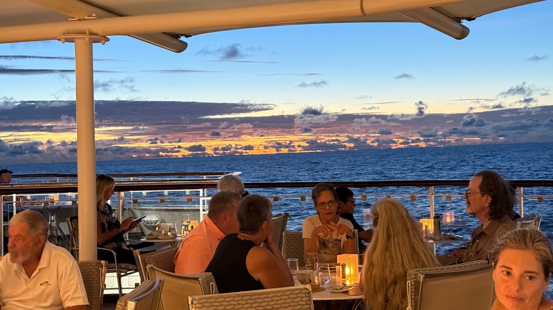 Once again we were charmed by the people and how lovely they were to us and grateful for our visit. They came to the Port , for our sail away and we got to dine looking at the lovely sky, as they faded into the distance. We are now off for 4 days at Sea to get to French Polynesia for Christmas!