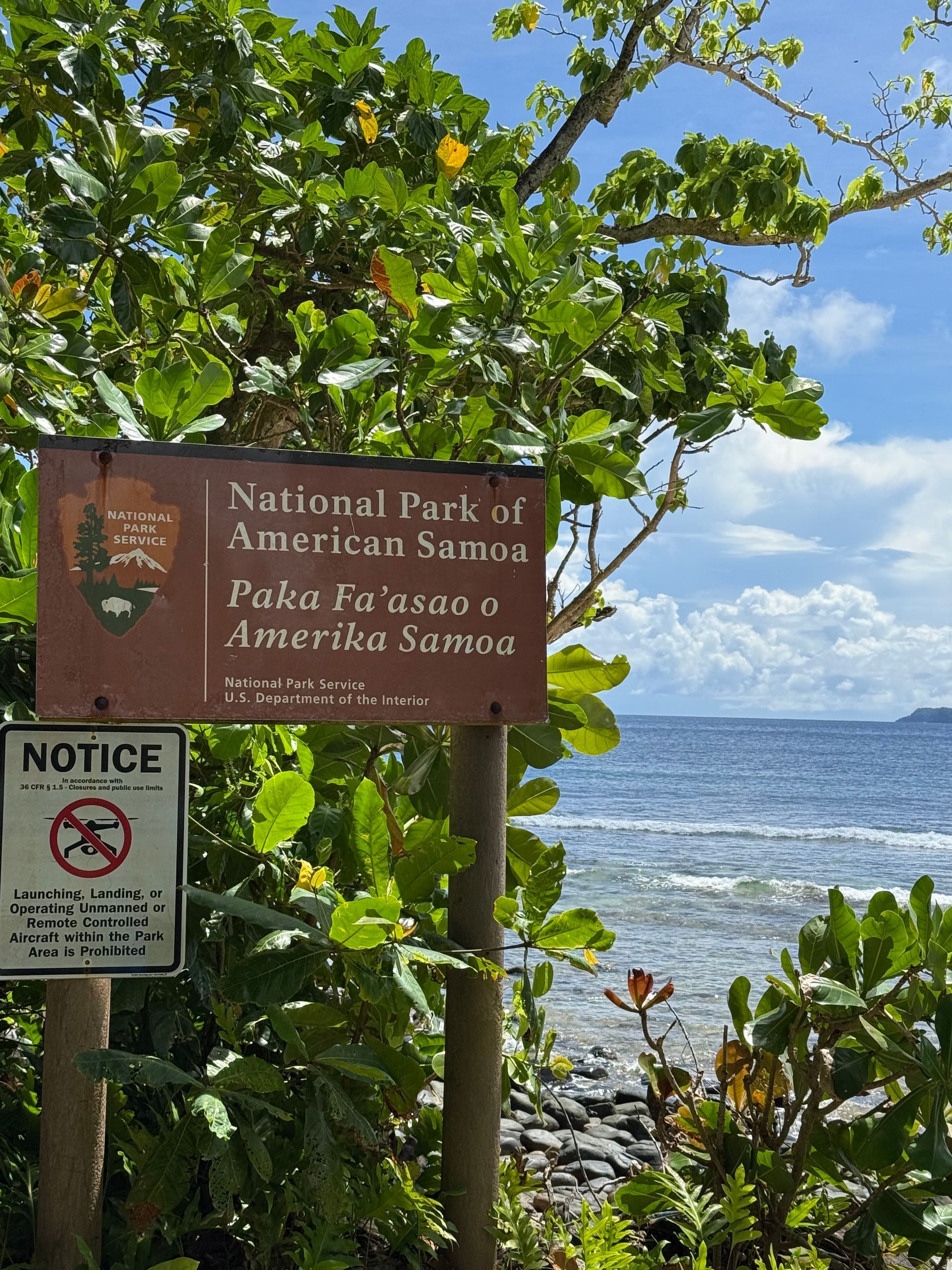 Today we took the National Park of American Samoa Tour. It's a unique park - the only one south of the equator and where the U.S. Government doesn't own the land. Efforts to establish the Park go back to mid 1980 over concern about the decline of fruit bats and wanting to protect the tropical rainforests. On October 31, 1988 Congress established the NP of American Samoa. In 1993, a complex arrangement for a 50 year land lease years with seven villages and the Samoa government was signed. We got lucky with our tour - we were expecting an open air bus, but because we were a small group, we got a plush air conditioned van!