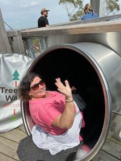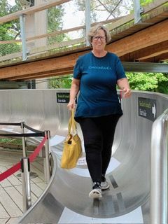 First you do the treetop walk through the forest and this leads to the giant slide. You don't pay to go down the slide, until your are at top and fully committed! All ages join in the fun. We asked one of the attendants, who told us the oldest child he knew to go down was 91 and just last week an 82 year old, celebrated her birthday going down! We were game and he joked that the boxes at the bottom where for those who didn't make it! Fear not!