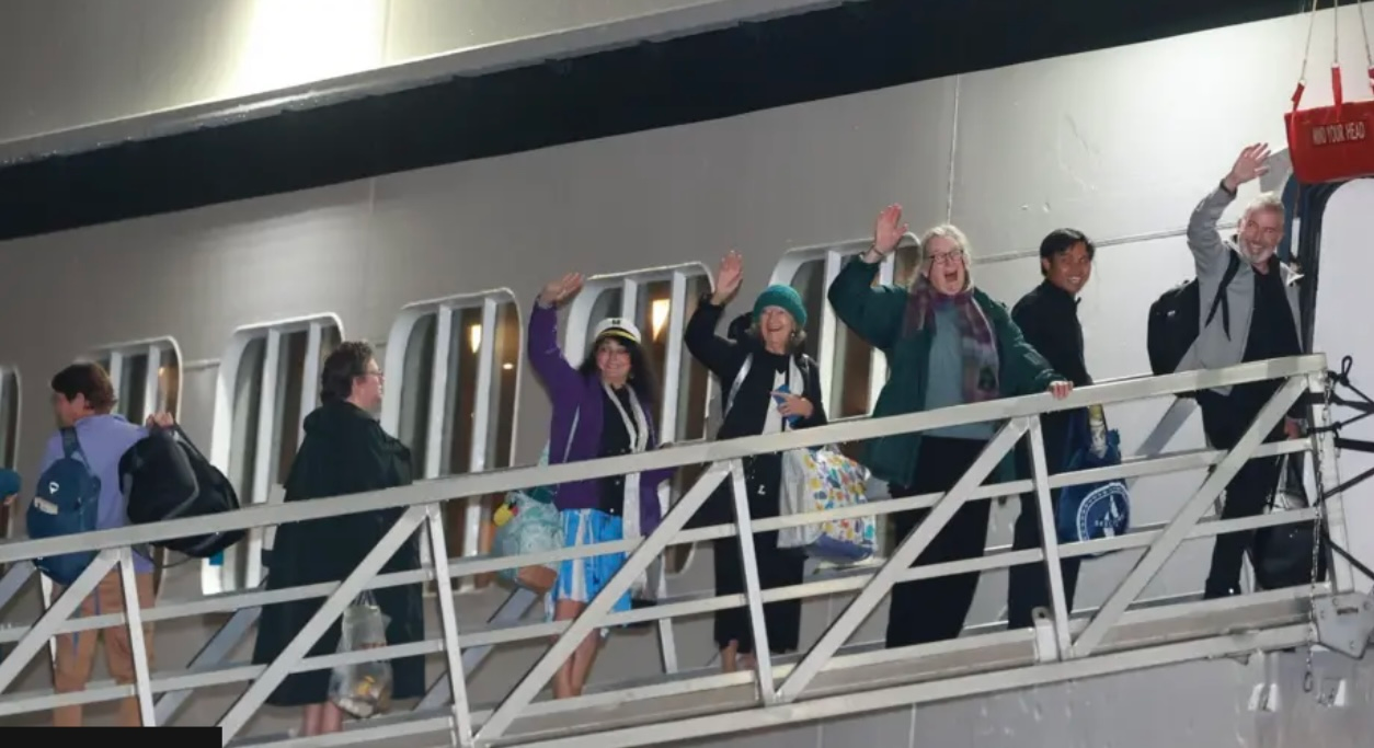 Monday, all us Duckies (nickname of cruisers!) met at the Belfast Cruise terminal, in the late afternoon. There was almost as much press there, as the roughly 100 residents, waiting to embark. After a few false starts and trepidation, we got the clearance, all erupted in joy, cheers and hugs and we were onboard the Ship by 9 pm. They greeted us with champagne and snacks. We put our carry on luggage in our cabins and had our first safety drill. Then dinner and dancing and we sailed away from Belfast at 11pm.