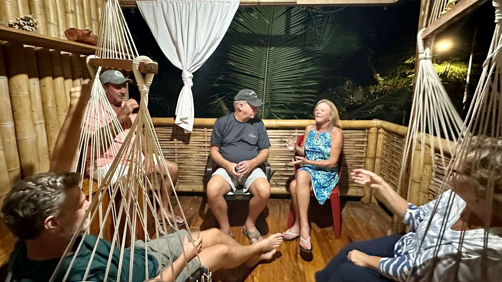 I organized a group tour for a fun day experience. We had a great day despite the rain that decided to join in. We started with a 45 minute van ride out through the city, into the countryside. Then we got in long boats and went up river to a waterfall, some swam or cheered on the guides to cliff dive. Then back in the boats to visit Sabata Village where 50 family members live as a community existing totally off the land, along the river. Next was a quick boat ride to our BBQ lunch spot. After lunch we got to tube down the river, through light rapids, for just about an hour. We ganged our tubes together with the guide - we had a chain of 14 in my group and the guides totally blew us away singing hymns for a good chunk of the journey. It was truly moving in that place with the rain drizzling and all of us linked together. Loved it!