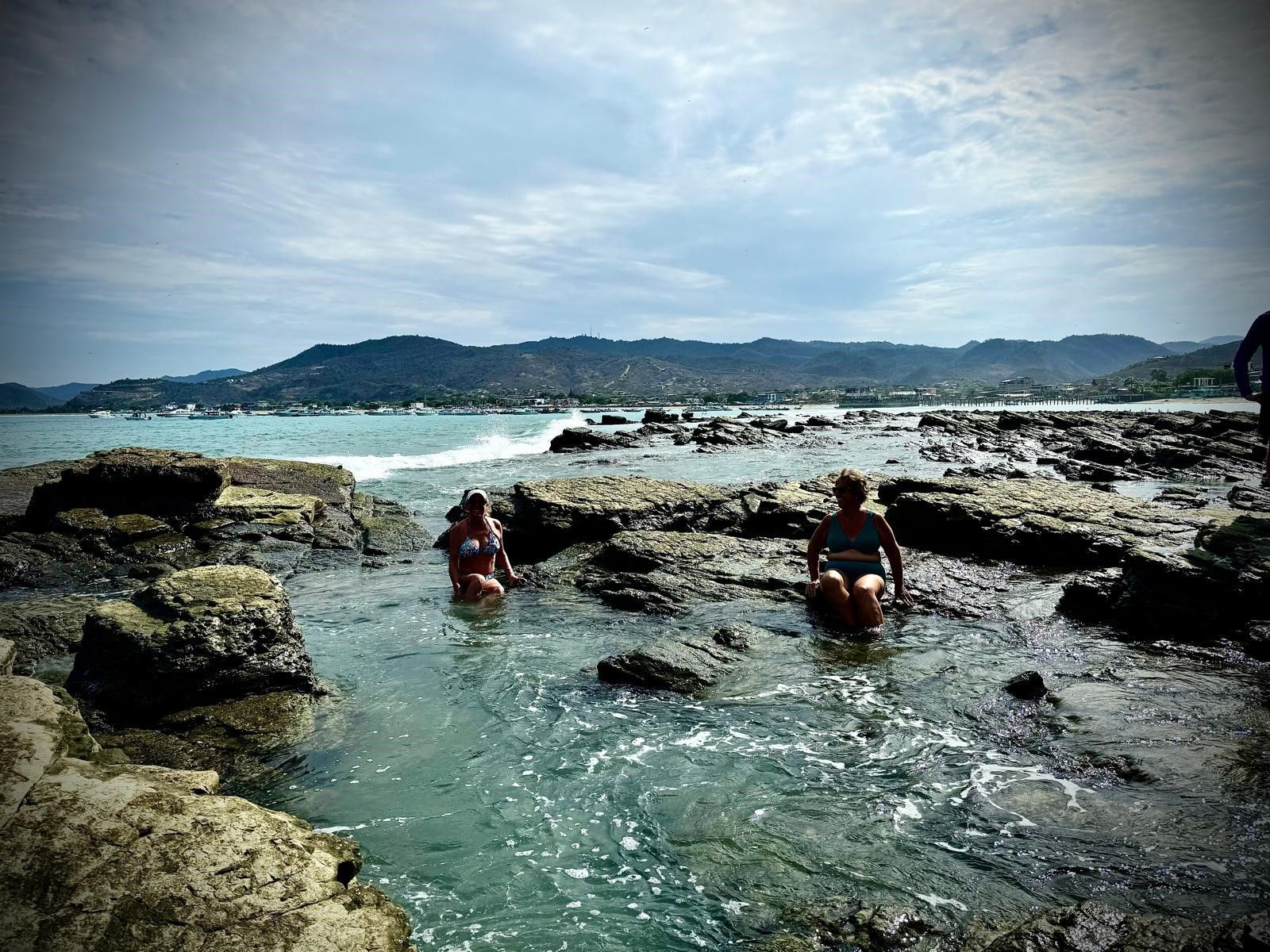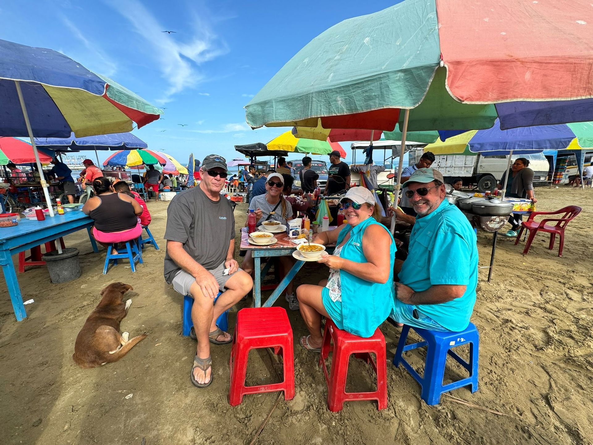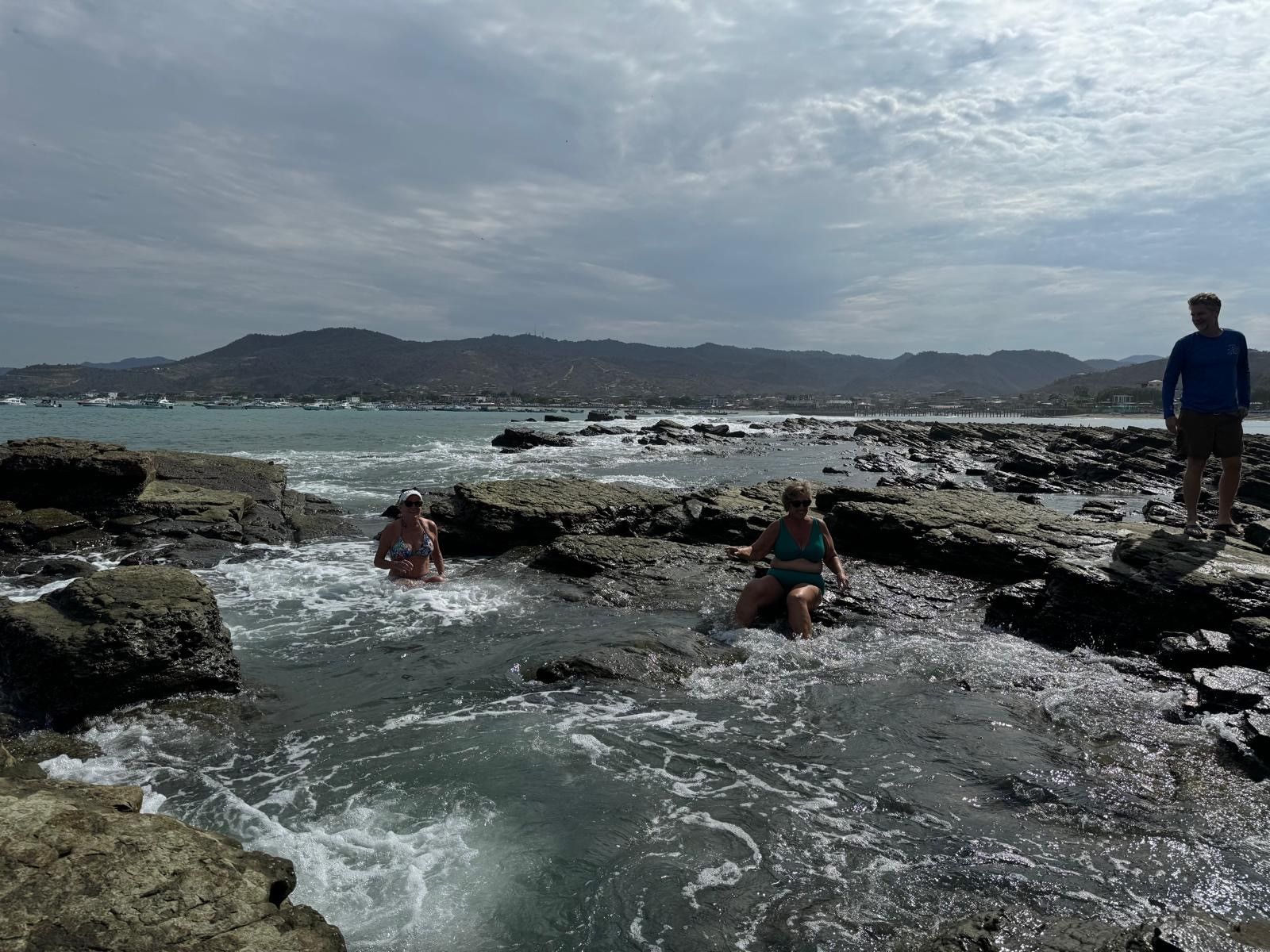 Quaint Beach Town of Puerto Lopez. Saturday Morning before leaving we had breakfast at beach and went on tidal flat rocks.