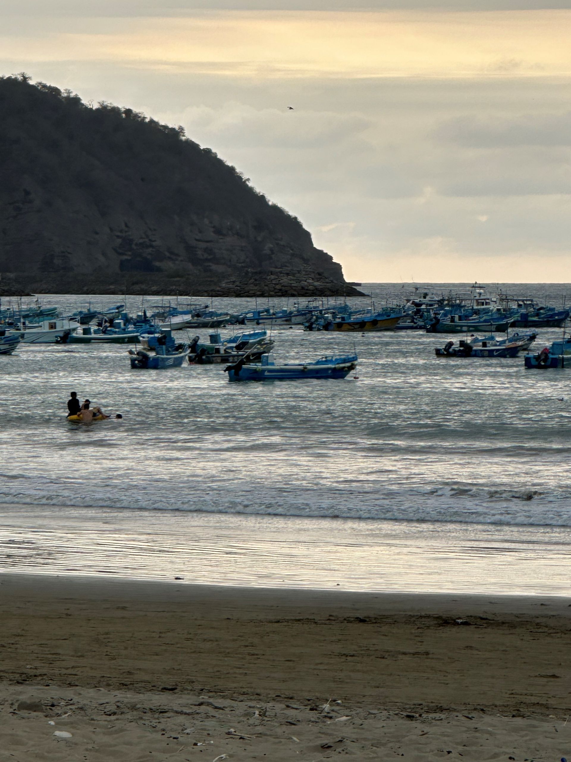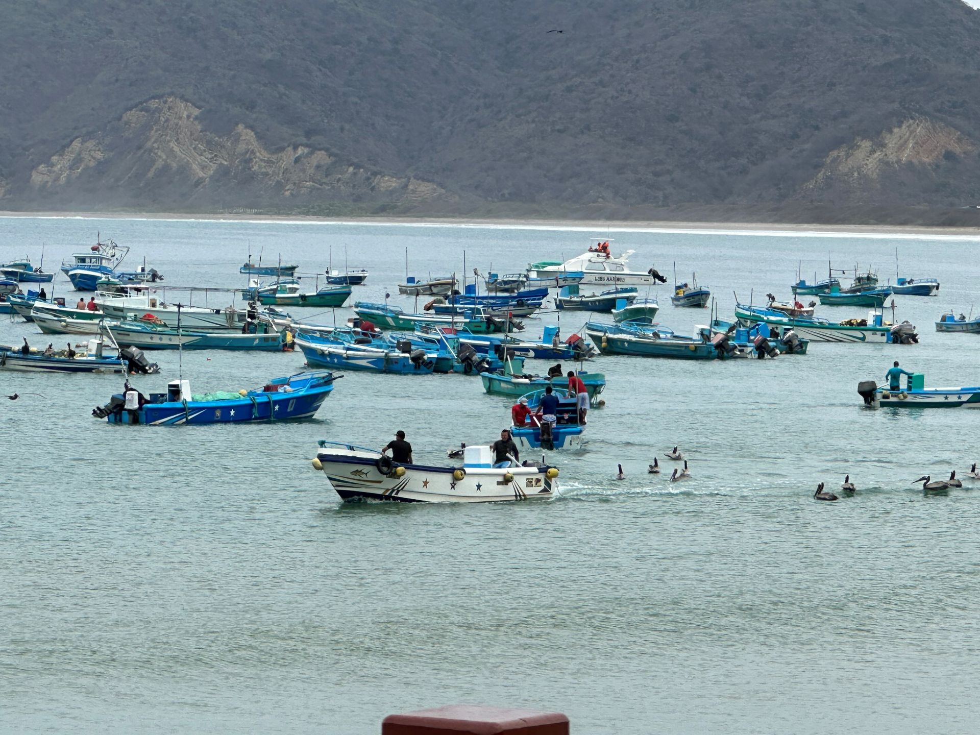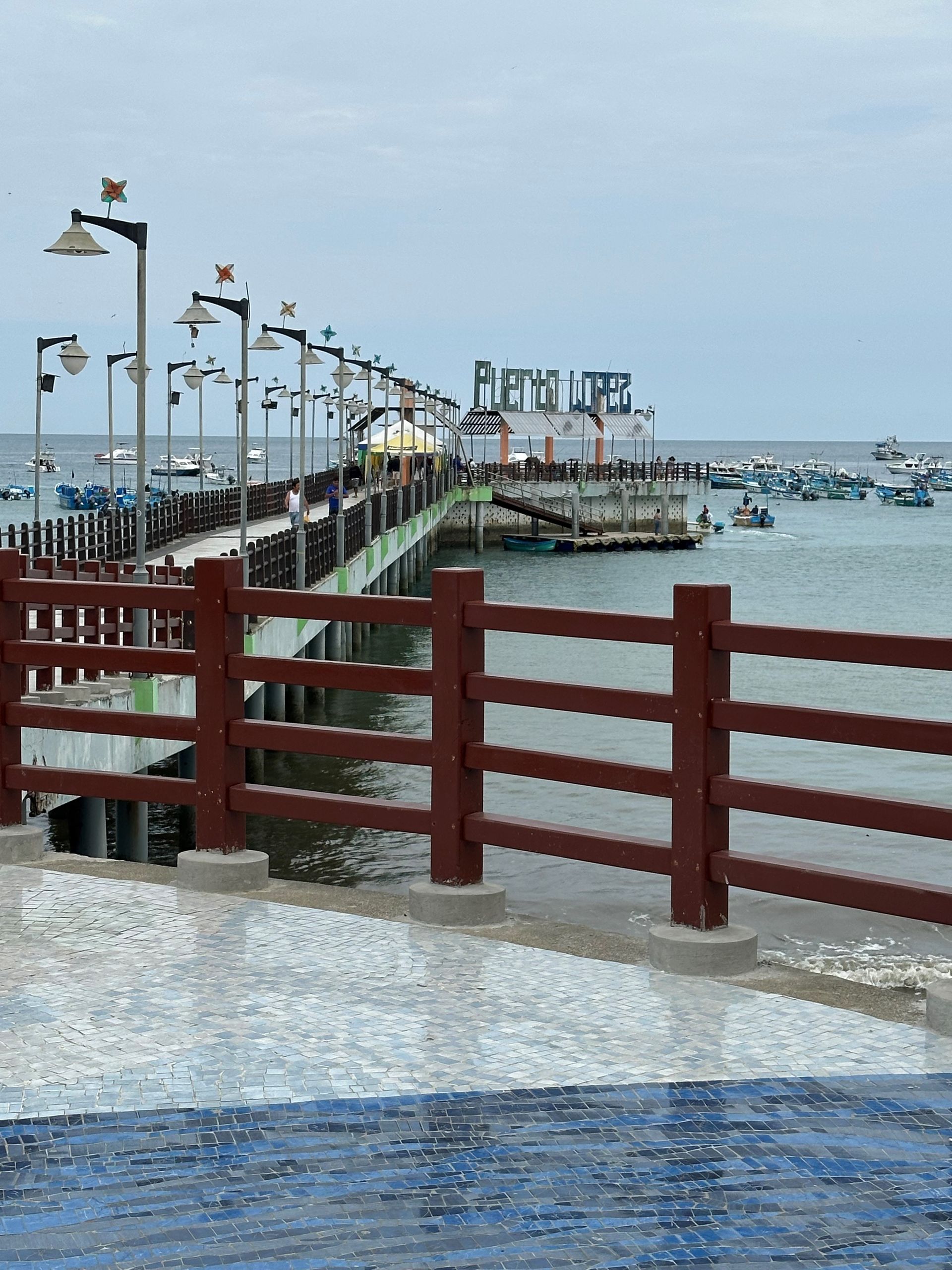 Quaint Beach Town of Puerto Lopez. Saturday Morning before leaving we had breakfast at beach and went on tidal flat rocks.
